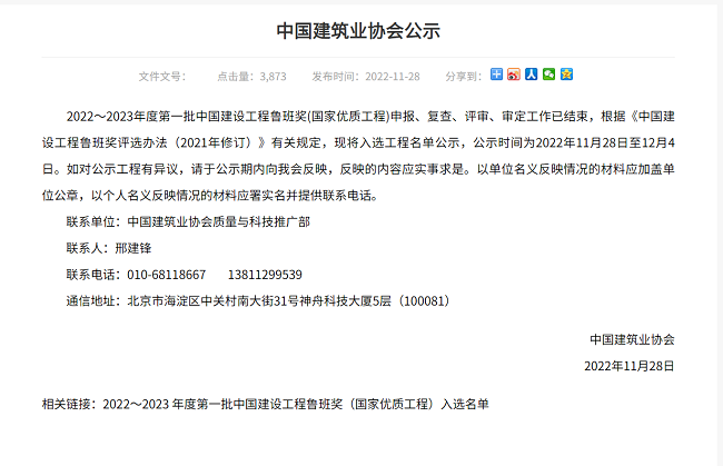 魯班獎(jiǎng)創(chuàng)立于1987年,是中國建筑行業(yè)工程質(zhì)量的最高榮譽(yù)獎(jiǎng),是廣大工程建設(shè)者爭創(chuàng)高水平高質(zhì)量工程項(xiàng)目的重要標(biāo)桿,在國內(nèi)外有著重要影響。