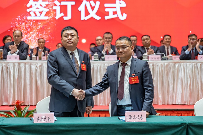 會上,公司黨委書記、董事長任杰作了題為《鼓起干勁 拼出闖勁 砥礪韌勁 鉚足拼勁 在推進行業一流企業建設上展現新氣象、彰顯新作為》的總結講話,以及題為《踔厲奮發新時代 實干爭先新輝煌 為高質量建設行業一流企業而努力奮斗》的總經理工作報告。來自公司各條戰線的140余名職工代表及列席代表肩負重托、齊聚一堂,共商大計、共謀良策。