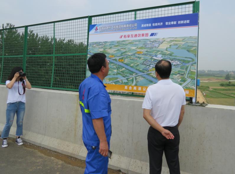 6月20日,安徽省交控集團建管處處長蘇新國在項目辦主任于春江等相關領導的陪同下,蒞臨公司承建的蕪合高速改擴建03標項目檢查指導工作。