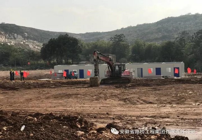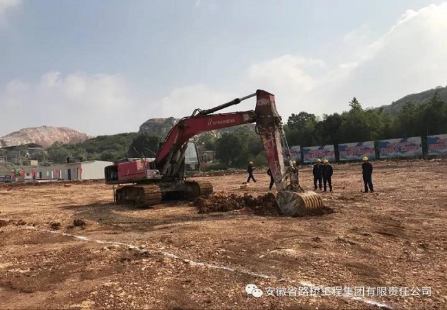 金秋十月,丹桂飄香,廣德S215PPP項目新杭服務區的場地上紅旗飄揚。上午9點56分,伴隨著一陣鞭炮聲和歡呼聲,挖機緩緩的駛入地基標線區,新杭服務區房建工程正式開工動土。