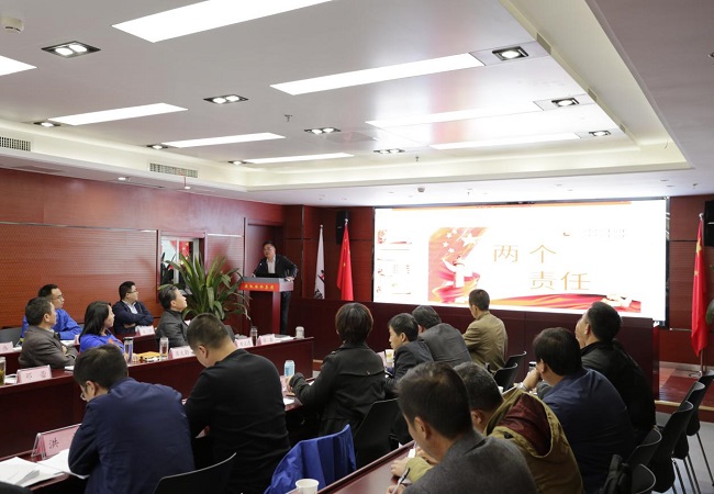 11月4日下午,在公司第四季度生產調度會暨安委會擴大會上,公司黨委委員、紀委書記、工會主席王勝利上了一堂“兩個責任”專題黨課。公司領導班子成員、機關各部門負責人、各子分公司負責人、項目經理、項目財務、安全負責人等90余人參加了學習。