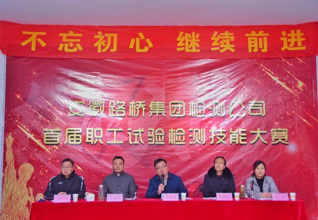 2018年1月7日,安徽路橋集團檢測公司首屆職工試驗檢測技能大賽在合肥順利舉辦。安徽路橋集團黨委委員、紀委書記、工會主席王勝利,工會副主席陸在銀,檢測公司黨支部書記、董事長卞寶林等出席了開幕式。