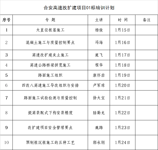 安徽路橋集團合安高速改擴建項目技術培訓班于2018年1月15日正式開班。