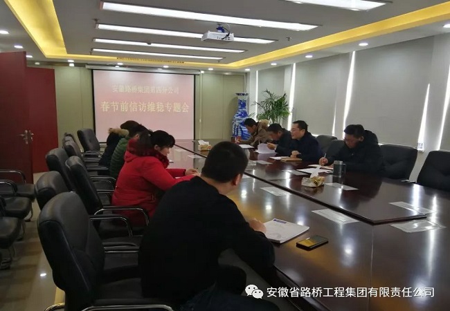 2月1日中午,四分公司在企融國際大廈16樓會議室召開了春節信訪維穩專題會議,會議由四分公司黨總支書記、工會主席朱大俊主持,分公司領導班子及相關項目經理、各部門成員參加了會議。