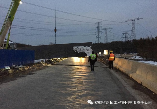 項目安全部結合實際情況和春運期間相關交通主管部門的要求,積極組織施工人員對主要受災路段、橋梁進行隱患排查工作,力求做到將通行隱患扼殺在萌芽中。針對道路易堵塞區域,項目部高度重視,認真排查。2月3日晚6點,排查工作進行到新安鋪橋,發現橋梁伸縮縫鋼板有松動情況。安全部迅速行動,第一時間豎起警告牌,安排人員在路邊告知過往車輛。隨后項目部出動起重機,對橋梁隱患區連夜進行消除。