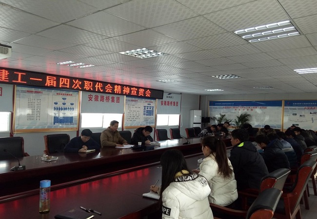 2月3日,安徽路橋集團第三分公司組織班子成員及合安項目部全體員工在合安高速01標項目部學習“安徽建工集團一屆四次職代會精神”,會議力求將職代會精神傳遞給分公司每一位員工。