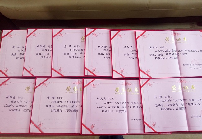 項目開工伊始,全體項目員工眾志成城,克服困難,迅速打開施工大干局面,并得到了業主的肯定。此次表彰是對項目部2017年度工作的肯定,同時也希望獲獎人員謙虛謹慎、戒驕戒躁,再接再厲,充分發揮模范帶頭作用,為合安高速改擴建項目做出更大貢獻。