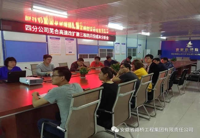 5月7日晚,四分公司蕪合高速公路改擴建工程三標項目部召開四月份成本分析會。項目領導班子及各部門負責人參加會議。