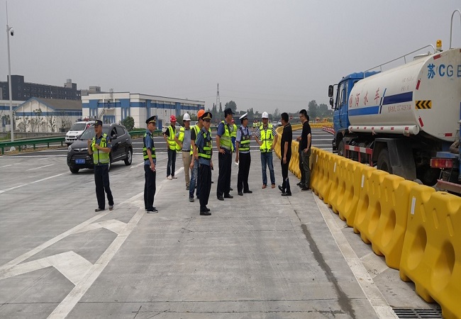 6月8日上午,由公司承建的合安01標嚴店收費站完成單幅雙向四車道交通導改,為新老收費站交通轉換做最后的準備。上午9時,項目部嚴格按照要求做好導改通車前各項交通設施的布置自檢;十時,一路三方對導改進行放行前的現場驗收;10時36分,嚴店收費站半幅新老站交通順利轉換,正式通車。
