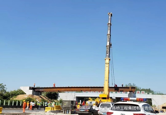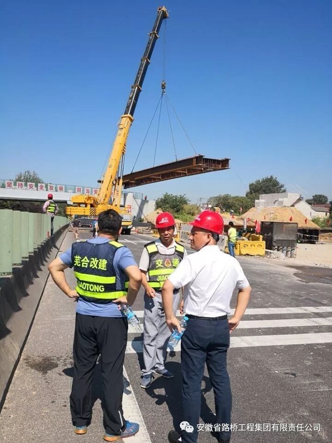 7月18日,蕪合高速公路改擴建三標董灣橋上跨分離鋼組梁吊裝架設順利完成。公司黨委委員、副總經理錢葉琳及高速公路一路三方親臨現場督導指揮。