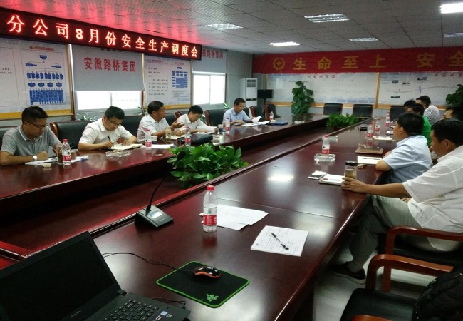 7月28日下午,三分公司在合安01標項目會議室召開8月份安全生產調度會。分公司領導班子、項目管理部人員及各項目部生產安全負責人員參加會議。