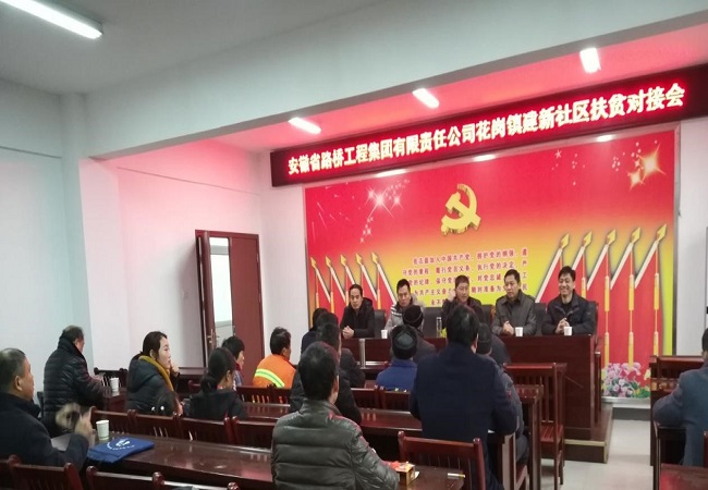 1月15日下午,安徽省路橋工程集團(tuán)有限責(zé)任公司與花崗鎮(zhèn)建新社區(qū)扶貧對(duì)接會(huì)正式拉開帷幕,合安高速改擴(kuò)建01標(biāo)項(xiàng)目相關(guān)負(fù)責(zé)人參加對(duì)接儀式。
