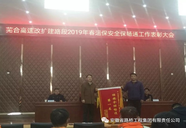 3月14日下午,合巢蕪管理處與高速交警六大隊(duì)聯(lián)合召開蕪合高速改擴(kuò)建路段2019年春運(yùn)保安全保暢通工作表彰大會(huì)。會(huì)上,合巢蕪管理處通報(bào)了各標(biāo)段在春運(yùn)期間高速安全保通工作評比的綜合評分。在考核期間,蕪合改擴(kuò)建三標(biāo)項(xiàng)目部遇到突發(fā)情況反應(yīng)迅速,采取應(yīng)急措施及時(shí),極大的緩解了合巢蕪高速的交通壓力。經(jīng)綜合評比,獲得了第一名的優(yōu)異成績。管理處副處長王寧勇為蕪合三標(biāo)頒發(fā)“保安全,保暢通”第一名的錦旗。