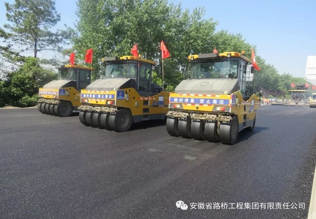 5月23日,蕪合高速改擴(kuò)建三標(biāo)在K94-K95段進(jìn)行左幅老路瀝青中面層攤鋪工作。烈日當(dāng)空,驕陽四射,施工現(xiàn)場一派緊張有序的場面:一輛輛重型卡車滿載瀝青混合料排隊(duì)等候,攤鋪機(jī)緩慢平穩(wěn)前行,工人們緊跟攤鋪機(jī),平整瀝青混合料,壓路機(jī)來回有序碾壓路面。機(jī)器的轟鳴聲和鐵鍬叮咚聲交相輝映,宛如聲勢壯闊的合唱。