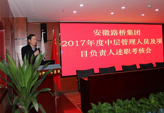 考核工作以專題會議形式進行,公司機關各部門及子分公司負責人共17人從德、能、勤、績、廉五方面對2017年全年工作進行了匯報,現場通過“領導評議”、“中層互評”、“項目評議”三個層次按權重進行綜合考評打分。