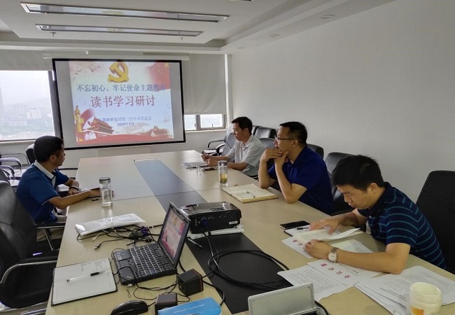 7月9日,三分公司舉辦“不忘初心、牢記使命”主題教育集中學習研討會,三分公司黨總支委員、黨群工作部相關人員參加學習研討。
