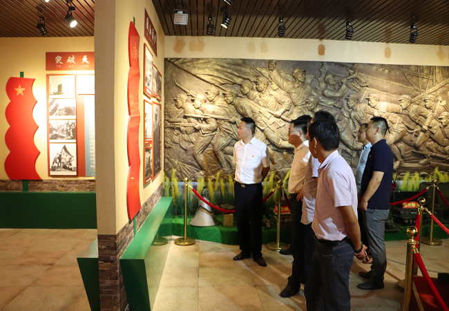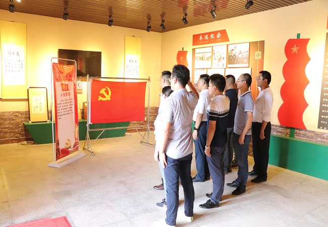 望江縣渡江烈士陵園是安徽省愛國主義教育基地,興建于1959年,是為紀(jì)念犧牲在渡江戰(zhàn)役中的革命先烈而建。在陵園里,大家瞻仰烈士雕像、紀(jì)念碑,向革命烈士鞠躬默哀,深切緬懷先烈的豐功偉績,憑吊烈士的英魂。隨后,大家參觀了渡江烈士紀(jì)念館,一組組珍貴的歷史圖片和歷史文獻(xiàn)資料,真實地記錄了望江革命英烈在戰(zhàn)爭年代,堅守信仰、對黨忠誠、舍身取義、浴血奮戰(zhàn)的光輝歷史,深深感染和震撼著每一位參觀者的心靈。在紀(jì)念館內(nèi),全體黨員面對黨旗,高舉右手,重溫入黨誓詞。