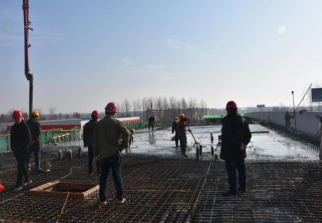 本次澆筑量為750方,經(jīng)過(guò)15個(gè)小時(shí)澆筑完畢。現(xiàn)場(chǎng)準(zhǔn)備泵車(chē)2輛,罐車(chē)12輛,澆筑過(guò)程中,頂板上技術(shù)員時(shí)刻對(duì)其澆筑質(zhì)量進(jìn)行把控,全方位的保障澆筑工作的順利進(jìn)行。