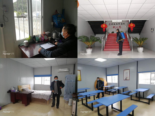 池祁項目11標工程部技術(shù)員胡振興已經(jīng)帶著妻子、女兒在項目部堅守了24天,春節(jié)值班,初七帶著家人回老家團聚的計劃被這場疫情徹底打亂,但一家人沒有任何怨言,默默的堅守在項目部駐地。胡振興帶著妻子、女兒每日打掃項目駐地、進行場所消毒,巡查工地現(xiàn)場,日復(fù)一日的重復(fù)著這看似簡單枯燥的工作,他們用自己樸實的方式守護這池祁11標這個大家庭。