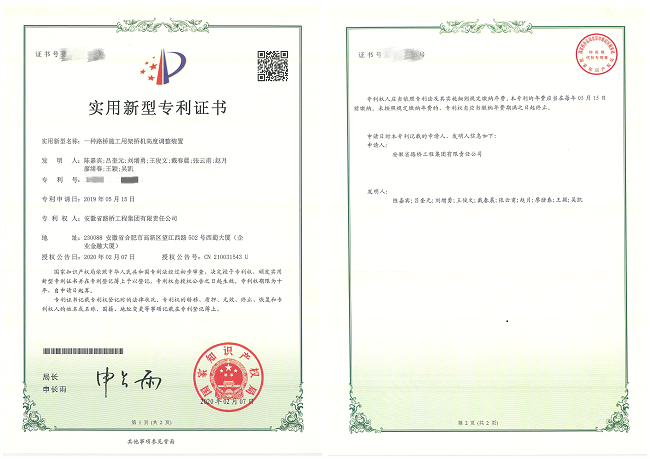 近日,西藏新瑞公司專利申請傳來捷報,《一種路橋施工用架橋機高度調整裝置》獲得國家知識產(chǎn)權局授權,此專利由我公司陳嘉賓、呂奎元等員工共同研發(fā)。