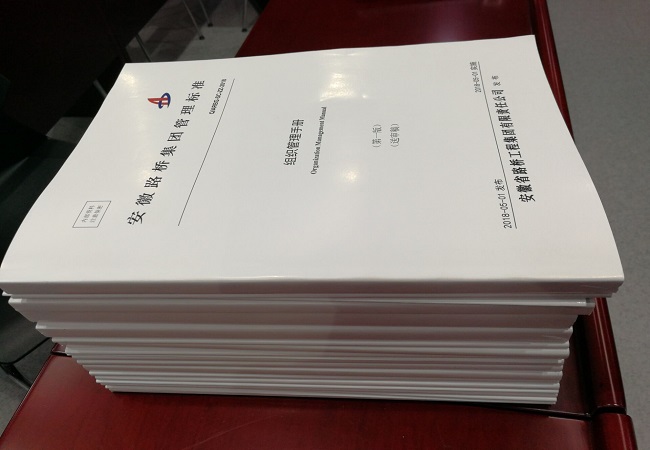 安徽路橋集團標(biāo)準(zhǔn)化管理體系以規(guī)范管理為中心,堅持專業(yè)化管理,堅持經(jīng)理責(zé)任制,做到組織標(biāo)準(zhǔn)化、流程標(biāo)準(zhǔn)化、表單標(biāo)準(zhǔn)化。整個管理體系包括“制度、辦法、手冊”三個層級,涵蓋從公司總部到項目部各層面。下一步,公司會把標(biāo)準(zhǔn)化成果運用到信息化建中,通過信息化固化流程、表單,在運行過程中不斷優(yōu)化管理體系。