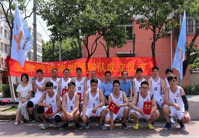 成立儀式上,王書記為隊員頒發聘書和隊旗,他表示:成立安徽路橋集團籃球隊,旨在進一步豐富員工業余文化活動,培養員工“愛工作、會生活”的健康人生態度,營造積極向上、永爭一流的企業作風,同時也是為我們廣大員工搭建展示自我、溝通交流的平臺,呈現員工良好的精神風貌。他要求:各位隊員要擔負起籃球隊乃至公司一份子應有的高度責任感和使命感,在嚴格訓練、嚴格比賽的同時,發揚“三種精神”——團隊精神、合作精神、拼搏精神,干好工作,打好比賽,永爭第一。