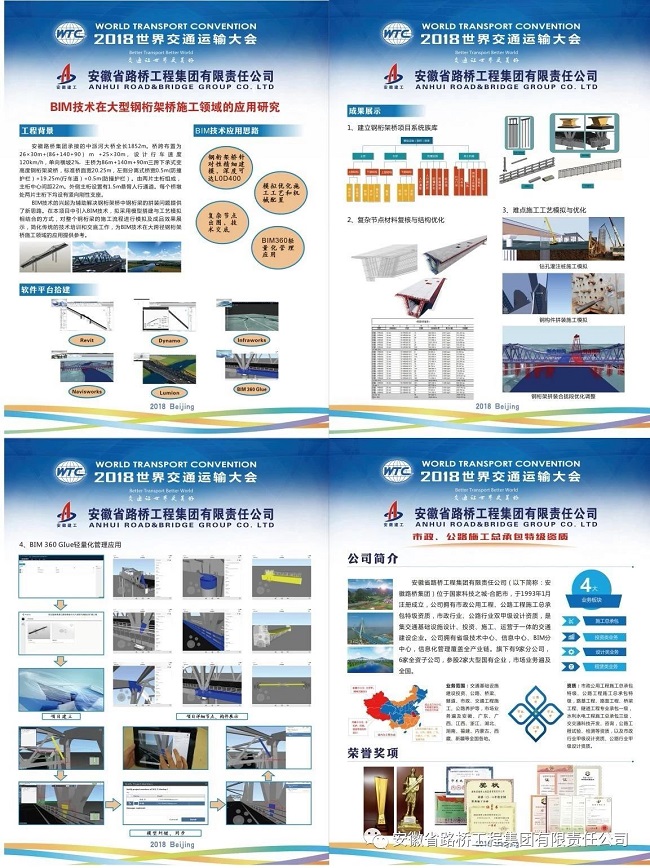 我公司受承辦方中國公路學會邀請參會,并向交通大會投稿《BIM技術在鋼桁架橋施工領域的應用研究》論文,且于6月20日在大會參加墻報展示。公司墻報于國家會議中心三層學術交流區首個展席位展示,展報內容受到國內外專家關注。