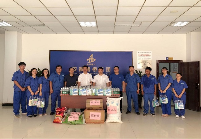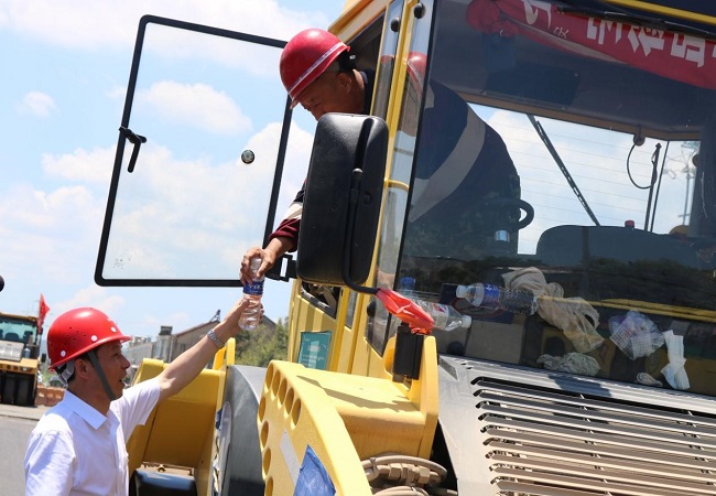 公司領(lǐng)導(dǎo)每到一處,都會先來到溫度最高,熱浪最強(qiáng)的一線施工現(xiàn)場,雖然烈日當(dāng)空,但在作業(yè)現(xiàn)場都會看到安徽路橋集團(tuán)的紅旗招展,施工一線機(jī)械轟鳴,一片大干繁忙的景象,領(lǐng)導(dǎo)們每到一處,最先關(guān)心的就是一線施工人員,向他們表示親切的問候,并親手將防暑降溫慰問品以及防暑降溫藥品送到一線職工手中,叮囑項目管理人員要合理安排員工作息時間,采取有效防暑降溫措施,保證高溫作業(yè)條件下員工的身體健康。
