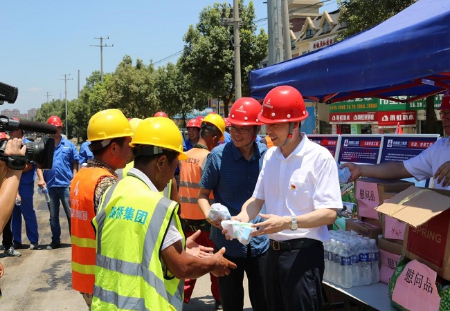 高溫橙色預(yù)警,最高氣溫超39°C!今年暑期,高溫?zé)崂讼碚麄€安徽大地。7月17日開始,公司領(lǐng)導(dǎo)分別奔赴市政、廣德、蕪黃等項目一線開展“戰(zhàn)高溫,送清涼”慰問活動,為堅守一線的職工送去“清涼”關(guān)懷和問候。“戰(zhàn)高溫,送清涼”體現(xiàn)的不僅是安徽路橋集團(tuán)人不怕苦不怕累艱苦卓絕精神,還有公司對一線員工的深深掛念。