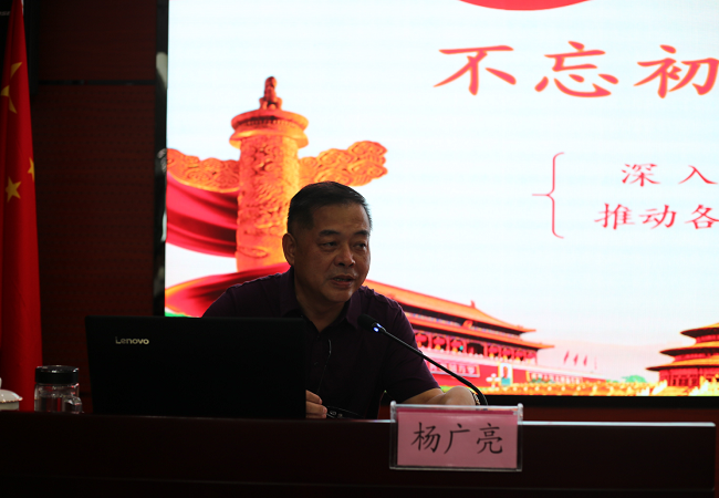 楊廣亮同志將黨課分為三個部分,一是“提高站位,充分認識主題教育的意義和目的”,介紹“初心、使命”基本內涵、詳述主題教育重大意義、闡明主題教育總體部署;二是“全力以赴,切實抓好主題教育的各項工作”,包括堅持“四項措施”全過程貫穿,重點抓好“三個圍繞”,抓好“三個以案”警示教育;三是“壓實責任,確保主題教育順利開展”,強調不僅領導要帶頭發揮表率作用,還要懂得嚴肅紀律,做到“四個力戒”,更要注重結果,以具體收獲檢驗主題教育的實效。