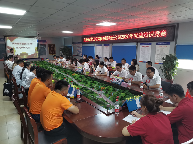 為深入學(xué)習(xí)貫徹習(xí)近平新時代中國特色社會主義思想和黨的十九大精神,推進主題教育常態(tài)化制度化。8月7日,由公司黨委主辦、四分公司協(xié)辦的2020年度黨建知識競賽,在池祁高速11標(biāo)項目會議室成功舉辦。5個分公司及設(shè)計、檢測、設(shè)備租賃、公司機關(guān)共9支代表隊參加比賽,為大家?guī)硪粓鰟e開生面的智慧較量和腦力比拼。公司黨委委員、紀(jì)委書記王勝利出席,機關(guān)黨群部門及參賽單位黨務(wù)人員共計50多人為參賽選手加油助威。