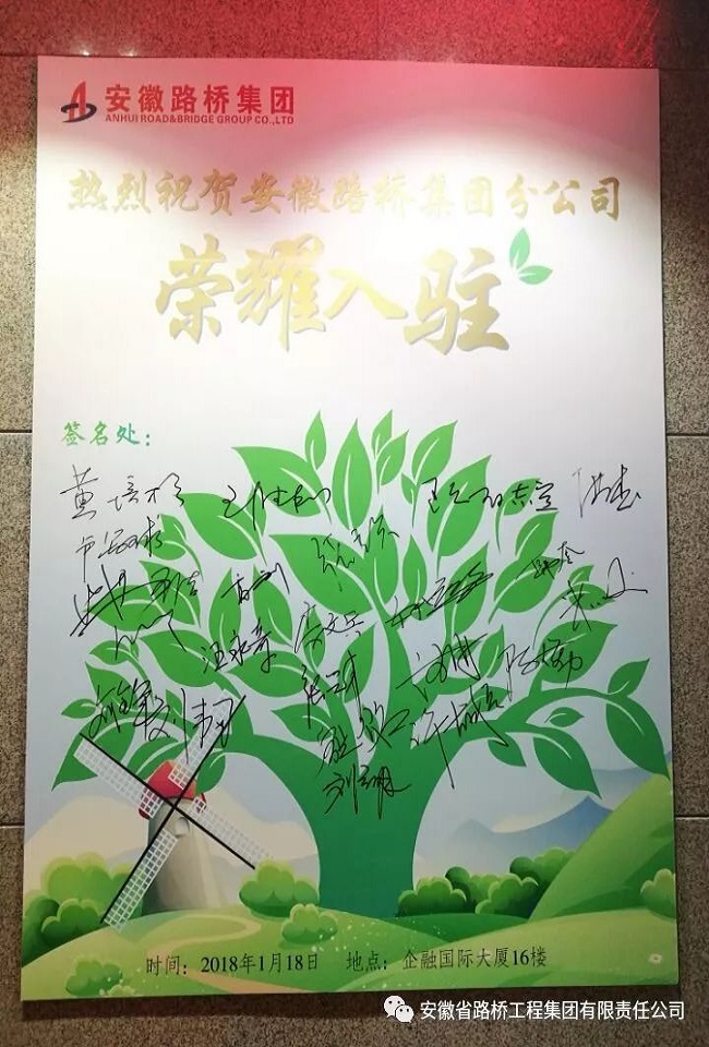 祥云環繞新門第,雙節同賀喬遷喜。10月1日,安徽路橋集團正式入駐安建國際大廈,迎來了喬遷之喜。喬遷新址,是信心、實力的的標志,展現了公司企業形象的全面提升。安徽路橋集團從此立足新起點,邁向新輝煌!