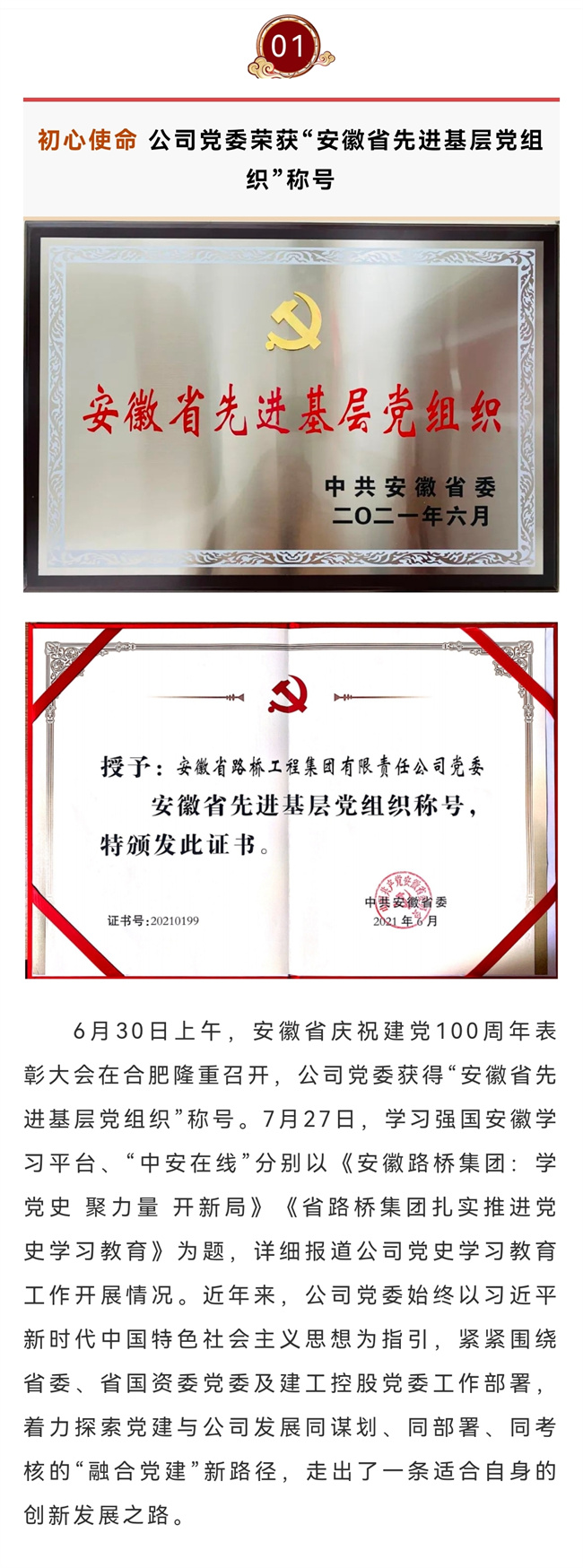 2021年是中國共產黨建黨100周年,也是“十四五”開局之年。在建工控股、建工股份兩級黨委的領導下,公司黨委堅持以習近平新時代中國特色社會主義思想為指導,深入貫徹集團公司2021年工作會議精神和公司二屆七次職代會精神,圍繞“開好局、起好步”,實施黨建引領,推動規劃落實,健全管理體系,優化資源配置,構建核心能力,培育優勢品牌,深入貫徹新發展理念,在力保“十四五”首戰必勝中開新局,為打造“千億建工”貢獻百億力量。現將2021年度十件大事總結如下: