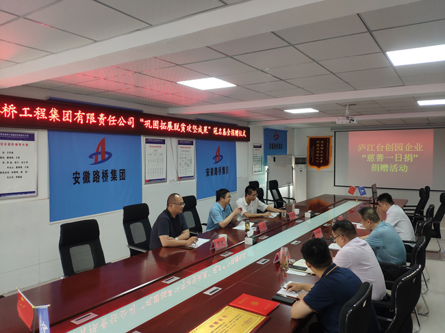 捐贈儀式上,王升副會長向與會人員介紹了此次募捐活動的由來及目的,詳細(xì)講述了廬江縣實施“一米陽光”助殘、“薪火相傳”助學(xué)、“鄰里守望”互助等三大社會幫扶工程的初衷和使命,并對公司的捐贈善舉表示感謝。隨后,干戈副書記與王升副會長簽訂關(guān)于設(shè)立“安徽路橋集團(tuán)鞏固拓展脫貧攻堅成果三大工程基金”的協(xié)議,廬江臺創(chuàng)園管委會工會主席張波頒發(fā)捐贈證書。