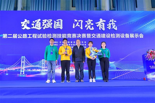2023年3月25日,全國第二屆公路工程試驗檢測技能競賽決賽暨交通建設檢測設備展示會在廣西南寧舉辦。檢測公司喜獲團體第一名,張鵬、孫偉榮獲個人技能競賽亞軍,張鵬榮獲知識競賽亞軍,孫偉榮獲知識競賽季軍。