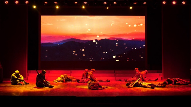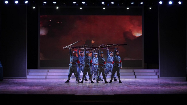 本次藝術(shù)團(tuán)課的舞蹈《出征》,其創(chuàng)作背景是以六安市金寨縣送郎當(dāng)紅軍為故事線(xiàn)索,講述了革命時(shí)期為了支援抗戰(zhàn),11位年輕的戰(zhàn)士們遠(yuǎn)離家鄉(xiāng)和親人,只身奔赴戰(zhàn)場(chǎng),最終壯烈犧牲的英勇事跡。揭示了烽火歲月,金寨人民以大無(wú)畏的犧牲精神,為中國(guó)革命事業(yè)建立了彪炳史冊(cè)的功勛。排練期間,所有參演人員克服疫情的影響,在安排好自身工作的前提下,不畏挑戰(zhàn)、不說(shuō)苦累,在連續(xù)高溫的情況下,揮汗如雨、反復(fù)打磨,即使臺(tái)下沒(méi)有觀眾,他們的熱情也不減絲毫,力爭(zhēng)每個(gè)動(dòng)作都能達(dá)到最佳效果。僅僅半個(gè)月的時(shí)間就高質(zhì)量地完成了整個(gè)節(jié)目的排演及錄制工作,比預(yù)計(jì)時(shí)間整整提前一個(gè)月,充分彰顯了路橋集團(tuán)團(tuán)員青年勇于奮斗、敢于爭(zhēng)先的精神。