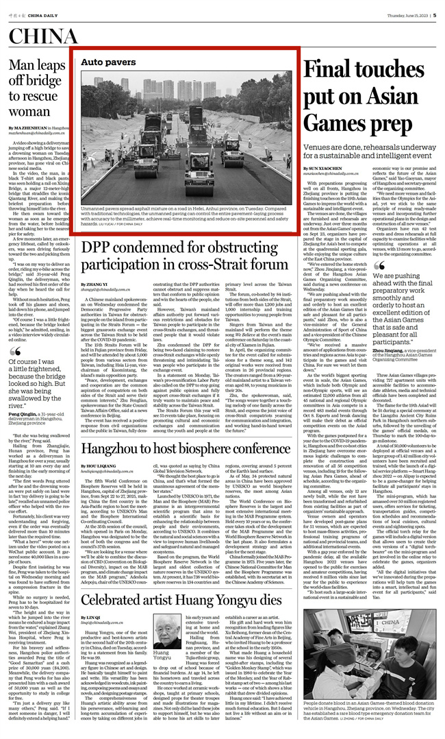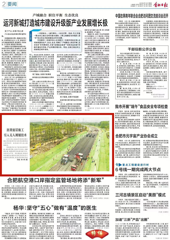 6月15日,《中國日報》(CHINA DAILY)英文圖片報道公司市政項目引入無人攤鋪技術,企業對外影響力進一步提高。