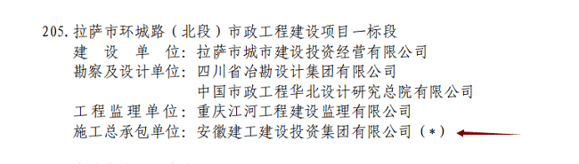 近日,中國施工企業管理協會發布了《關于2022-2023年度第二批國家優質工程獎候選項目名單》,安徽建工建設投資集團承建的“拉薩市環城路(北段)市政工程建設項目一標段”繼2022年獲評西藏自治區“雪蓮杯”獎后,再奪國家優質工程獎!