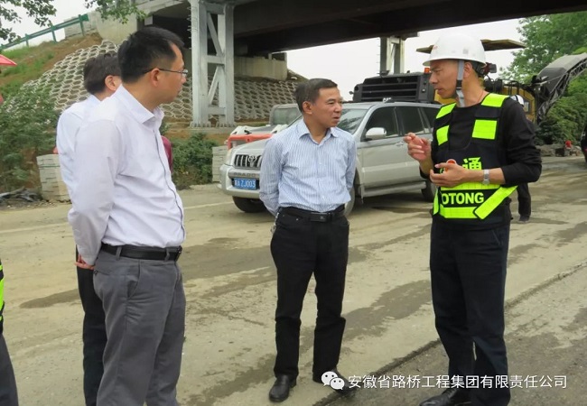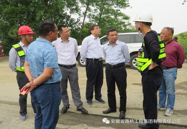 5月9日下午,安徽省交通運輸廳總工程師章后忠蒞臨蕪合高速改擴建三標檢查指導,省交通廳建設管理處副處長楊菲玲、質監局副局長卞國炎陪同檢查。