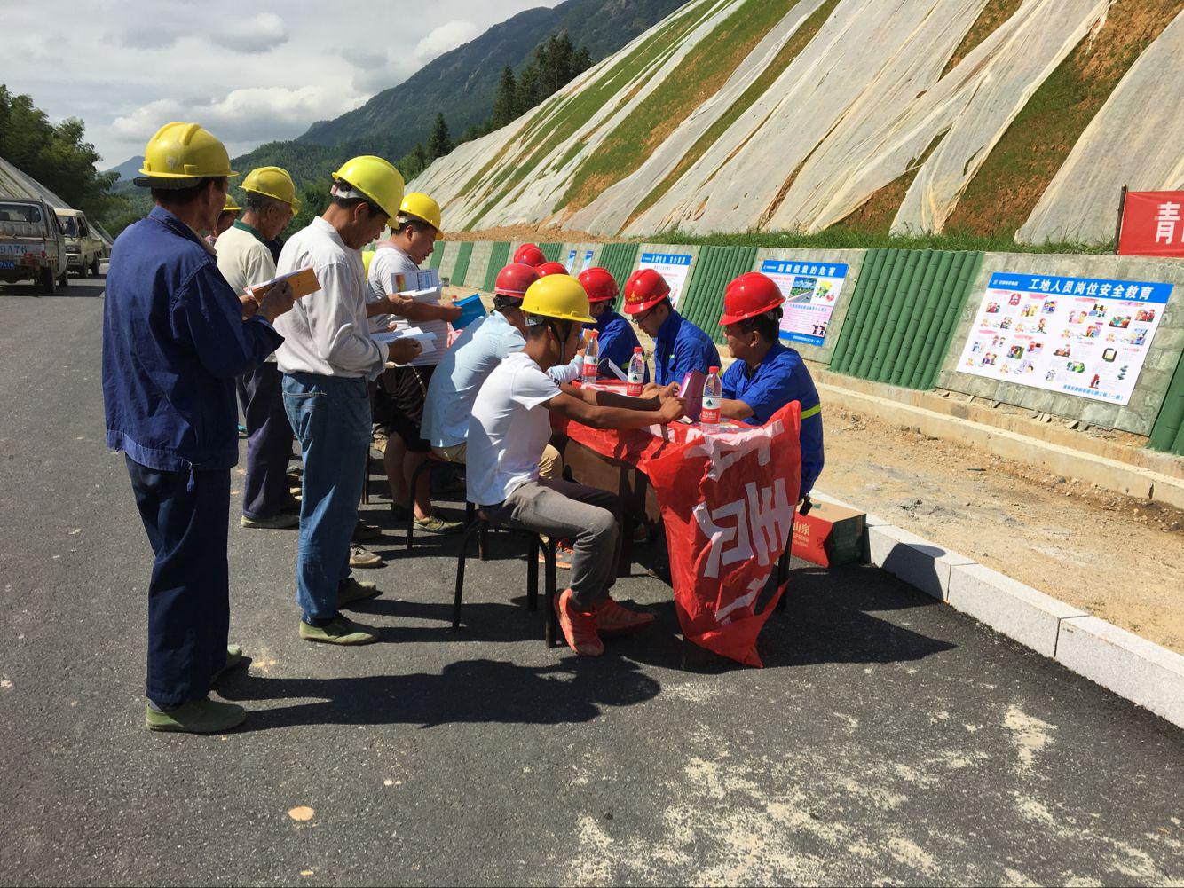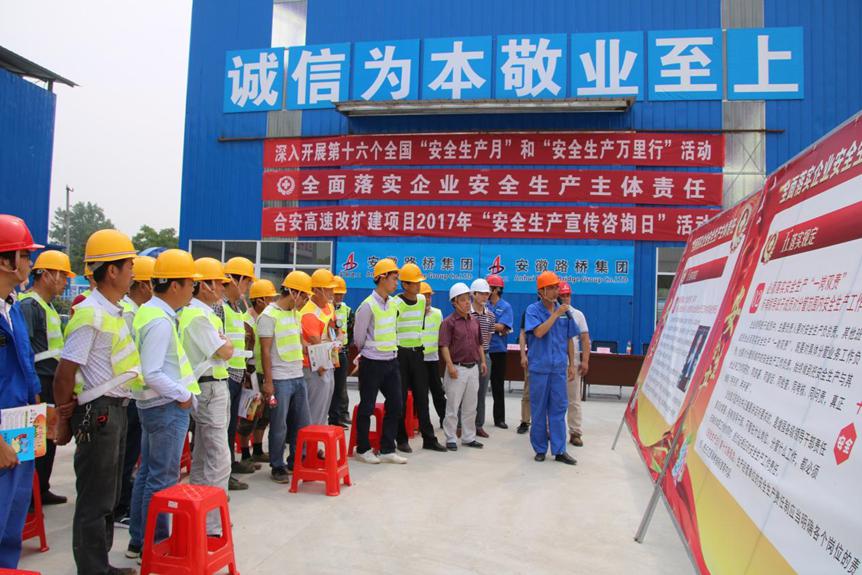 蕪合高速公路改擴建三標發放安全宣傳資料,強化一線工人安全意識,解答一線工人提出的有關安全問題。