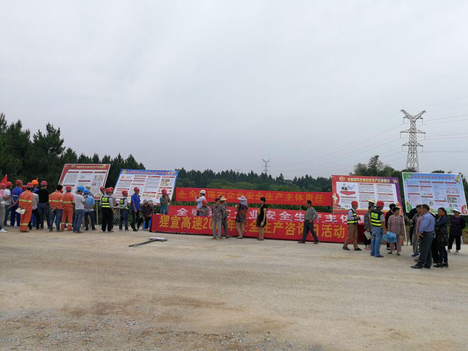 貍宣高速路面一標、二標聯合開展安全生產月咨詢日活動,邀請業主、監理等單位參加,對本年度安全生產月展板講解及對周邊村民發放宣傳資料并開展安全知識咨詢活動。