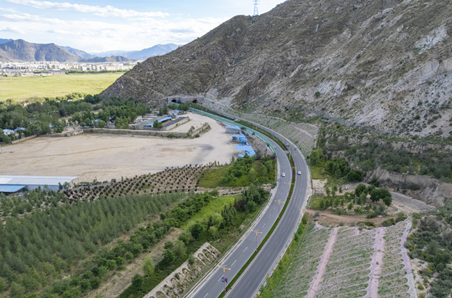 新建拉薩市環(huán)城路(北段)市政工程建設(shè)項(xiàng)目一標(biāo)段,位于雪域圣城拉薩市中心城區(qū)北部,是全世界海拔最高的環(huán)城路。項(xiàng)目設(shè)計(jì)、施工與運(yùn)營(yíng)充分體現(xiàn)了綠色低碳理念,堅(jiān)持環(huán)保選線,以橋代填,以隧代挖。生態(tài)路基與自然環(huán)境相通、邊坡防護(hù)與特色景觀協(xié)同、道路設(shè)施與民俗文化共融,建工建投集團(tuán)的建設(shè)者們不畏高寒險(xiǎn)阻,以高標(biāo)準(zhǔn)、嚴(yán)要求,打造了一條全面體現(xiàn)交通基礎(chǔ)設(shè)施品質(zhì)的民族風(fēng)情路。