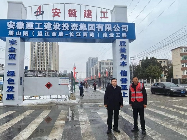 近日,合肥市遭遇低溫雨雪冰凍天氣,任杰深入項目施工現場,實地查看掃雪除冰與安全文明施工情況,向大家致以節日的問候和新春的祝福。