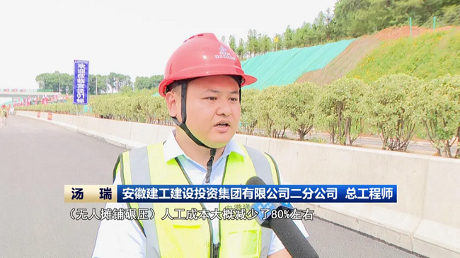 安徽建工建設投資集團有限公司二分公司總工程師 湯瑞:“相比傳統工藝,(無人攤鋪碾壓) 人工成本大概減少了80%左右。效率提升了50%,我們現場所得到的平整度,壓實度,還有這個滲透系數都是滿足規范要求的,能夠保證現場的一個施工質量?!?/span>