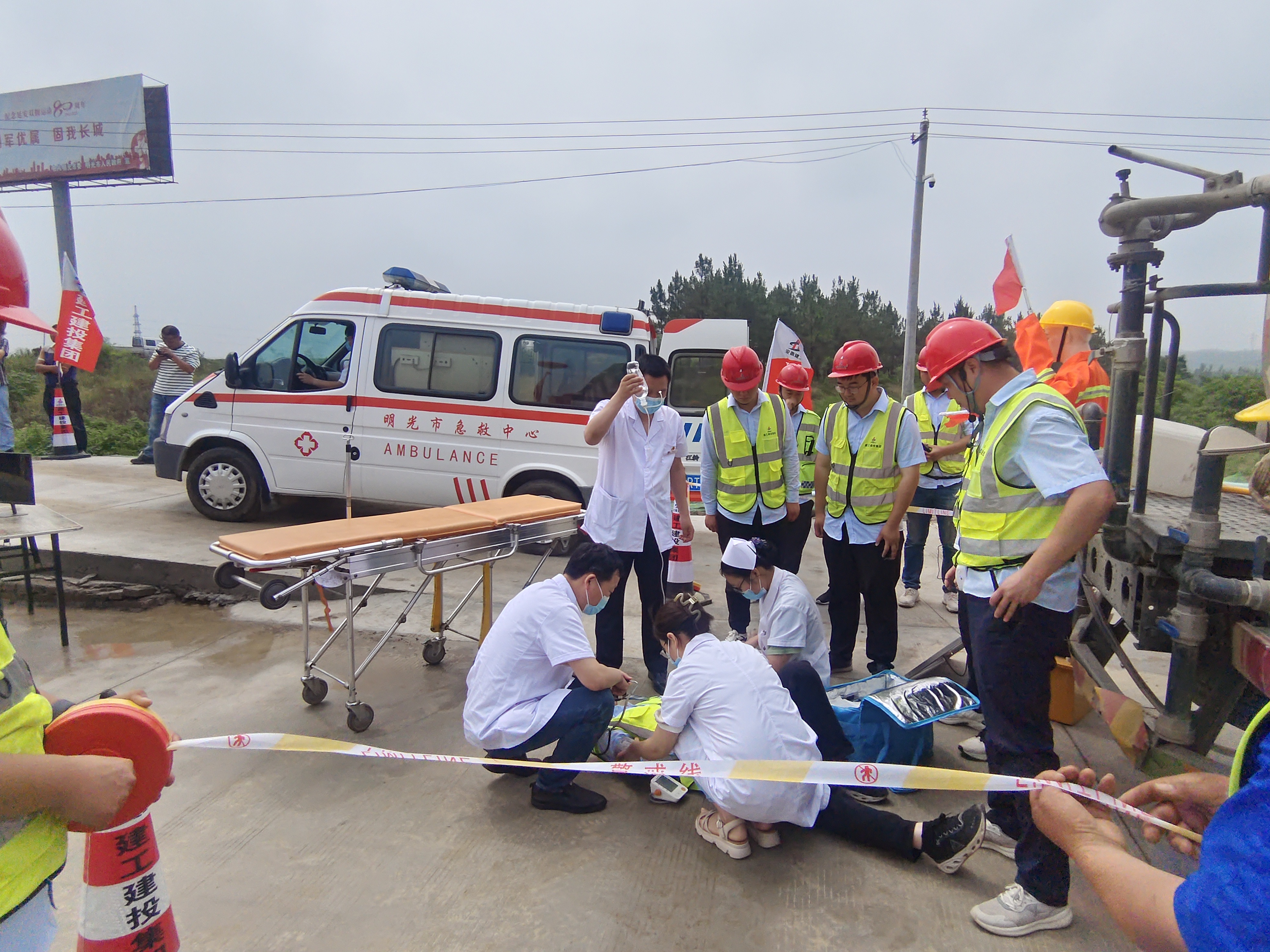演練過程中,模擬了一起因車輛失控導致的施工人員受傷,事故發生后,項目部立即啟動應急預案,各應急小組迅速進入工作狀態,展開緊急救援。現場指揮人員迅速判斷事故類型,協調各方力量進行救援。安全部門、醫療救護組等部門密切配合,及時對受傷人員進行救治和轉運。同時,項目部還充分利用了現場資源,如消防器材、急救藥品等,確保了救援工作的順利進行。