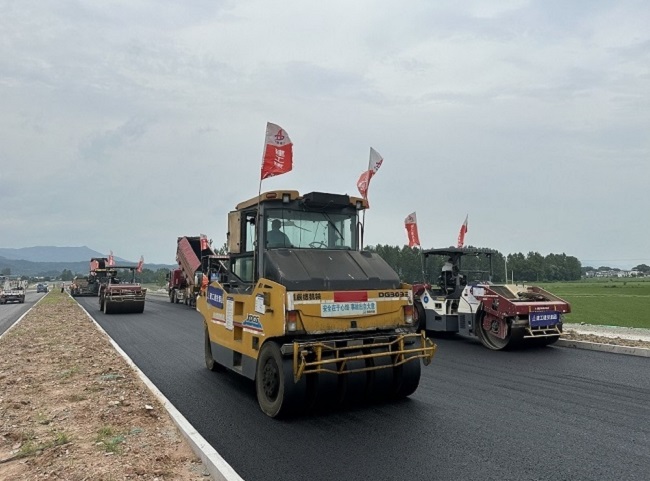 建工建投集團(tuán)繁昌S334項(xiàng)目施工現(xiàn)場(chǎng),36度高溫的“烤”驗(yàn)沒有阻擋任何一位施工人員熱火朝天的干勁,工人們站在滾燙的瀝青料上,頭頂烈日、揮汗如雨,全身心地投入到瀝青中面層攤鋪施工中,為實(shí)現(xiàn)最終通車目標(biāo)發(fā)起沖刺。