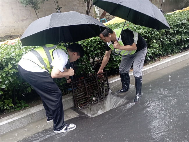 7月11日,受連續強降雨影響,合肥市區水位持續上漲,多個積水點水位超過預警。建工建投南新莊城中村改造項目部組織搶險救援、疏散引導、后勤保障、通訊聯絡等小組開展24小時帶班防汛,現場生產經理和施工員正在進行清理排水管道堵塞疏通清淤作業,為項目生產和臨近周邊住戶安全提供了有力保障。