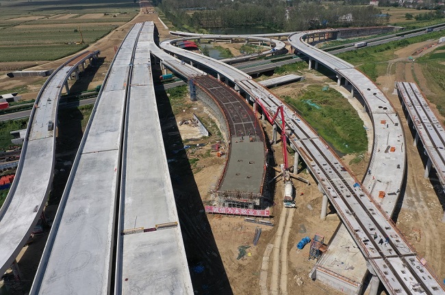 9月22日,經過8個小時的連續奮戰,五蒙高速TJ-05標包集樞紐D匝道橋最后一聯現澆箱梁順利完成澆筑,標志著本標段關鍵性控制工程建設全部圓滿完成,為月底實現包集樞紐橋梁工程全部完工的目標邁進了重要一步。