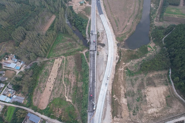 SK10+707中橋C保通路全長359米,通過交通轉換,成功實現(xiàn)了施工區(qū)域與通行區(qū)域的有效隔離,保障了施工人員的安全,并最大限度地減少施工對周邊交通的影響,確保居民出行便利。