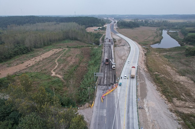 2024年10月16日,G104明光段一級公路改建工程二標段SK10+707中橋順利完成導改,為主線橋梁施工提供了安全通行保障。